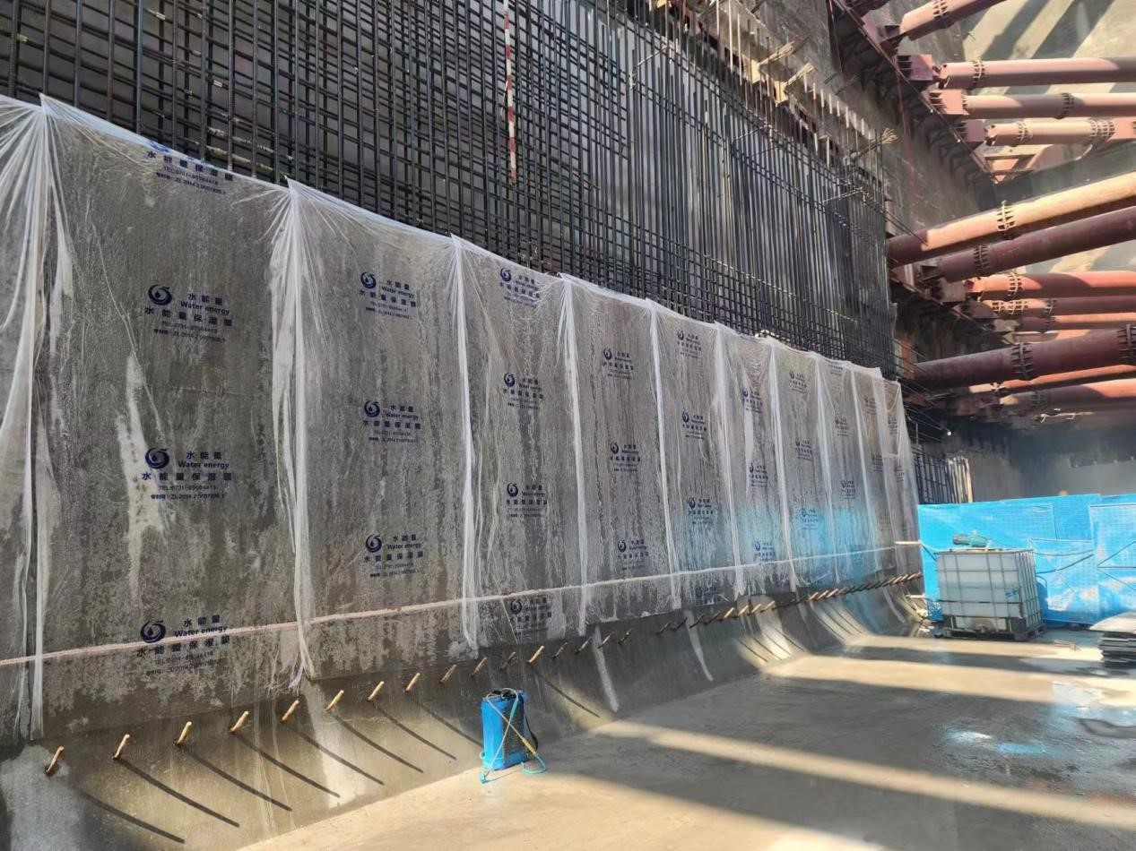 混凝土節(jié)水保濕養(yǎng)護膜,是以新型可控高分子吸水材料為核心,以塑料薄膜為載體,通過設備加工復合而成的卷材產品。其中高分子材料可吸收自重200倍的水分子, 吸水膨脹后變成透明的晶狀體,把液態(tài)水變成固態(tài)水,每平方米養(yǎng)護膜可蓄水0.5KG,成為一個固態(tài)的微型水庫,然后通過毛細管的作用向混凝土養(yǎng)護面滲透, 同時不斷吸收混凝土在水化過程中產生的蒸發(fā)水,因此在一個養(yǎng)護期內總能保持混凝土表面濕潤。